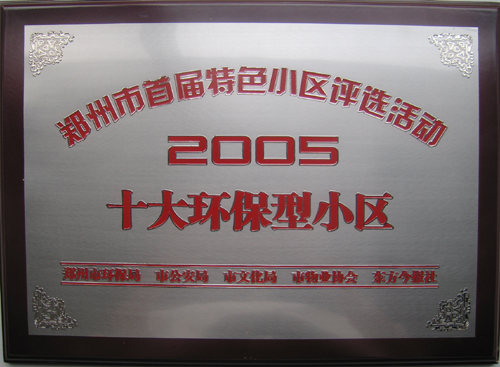 2005年9月7日,“金水花園”獲得鄭州市物業(yè)管理協(xié)會(huì)、鄭州市環(huán)保局、鄭州市公安局、鄭州市文化局和東方今報(bào)社頒發(fā)的鄭州市首屆特色小區(qū)評(píng)選活動(dòng)中的“2005年十大環(huán)保型小區(qū)”和“2005年十大服務(wù)型小區(qū)”稱號(hào)。